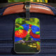 Ett brant och färgstarkt fotografi av ett par älskade parroter som provocerar varandra.