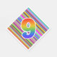 Den här pappra napkin-konstruktionen för öga-fångst, vibrerande och roligt har en färgstark mönster i rand, tillsammans med siffran "9" med en flerfärgad regnbåge som övertoning mönster. Pappra servetter som dessa kan vara roligt till använda vid ett party som hålls för att hedra minnet av någons nionde födelsedag, eller kanske ett pars nionde bröllop-årsdag, eller något annat nionde evenemang. [~Z0000352]