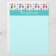 Stationär roligt anpassningsbar gjord i blek aquamarine färg. Bilder av färglöst söt liten uggla dekorerar huvudet, med ett akvamarinband under. Anpassa den vita texten så att du kan säga vad du vill. Underbart pappert redo för varje dag du skriver i brev.