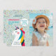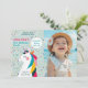 Färgfyllt Unicorn-födelsedagskort med foto Inbjudningar