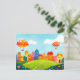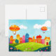 Färgfyllt visitkort för storybook, Roligt Imaginative Village Postcard för barn, färgstarka hus och Flytande svampar, Cute Illustrated Houses