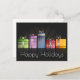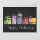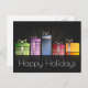 Färglöst paket inslaget i festen pappert och rosett band med Glad helg hälsning.