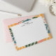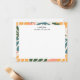 Pappersnotkortet har ett förtjusande mönster inspirerat av vintage groovy blad, designat i en varm och livfull akvarellpalett i grönt, orange, rosa, gult och dammigt blått. Bakgrunden visar en mängd söta och bohemiska växter och blad.