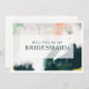 Detta färgglada abstrakta brudtärna-förslagskort är perfekt för ditt unika moderna boho-bröllop. Handmålat med texturerade penseldrag i mörkgrön, persika och senap, alla överlagda med en minimalistisk genomskinlig fyrkant, kommer det säkert att ge din tillställning en enkel men rustik bohemisk känsla.