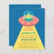Är du med på ett rymdäventyr? Lyft med denna söta och färgglada rymdparty-inbjudan som kommer med ett litet rymdskepp som flyger bland galaxens stjärnor och en söt och glad grön utomjording ombord. Utomjordingen har en hjärtformad antenn så den kommer i fred och försöker få vänner! Perfekt för rymdtemade barnkalas! Anpassa med festsdetaljer i ljusstrålen som kommer ut ur rymdfarkosten.