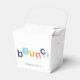Den här presentförpackningen från studsmatta-festen har grafik med hoppande bokstäver i marinblått, akvatint, gult och orange och en redigerbar plats för åldern inuti O:et. Det finns också en rad med redigerbar text under grafiken för ett personligt meddelande till gästerna. Klicka på redigera för att anpassa.