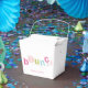 Färgglad barnkalas med studsmatta presentaskar