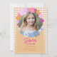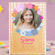 Fira din lilla flickas speciella dag med en glädjefylld och livfull inbjudan! Denna färgglada födelsedagsinbjudan har ett vackert foto av födelsedagsflickan, vilket gör den extra personlig och minnesvärd. Dekorerad med ljusa blommor och lekfulla fjärilar har designen en glad, modern ”dopamin”-stil som omedelbart sätter en rolig feststämning.