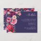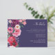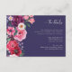 Djupt och färgglatt blomsterkort för bröllopsinbjudan. Se till att dina gäster har alla viktiga detaljer med detta eleganta inklusionskort, med en fantastisk sidobukett av akvarellblommor i ädelstensfärger rosa, vinrött, blått och lila, kompletterat med eukalyptus och grönska, mot en klassisk elfenbensvit bakgrund. Perfekt för alla årstider, från en varm höft eller vinterbröllop till en ljus vår- eller sommargårdsfest, detta helt anpassningsbara kort låter dig dela viktig information medan du bibehåller en sammanhängande, lyxig estetik genom hela din brölloppssvit. OBS: Texten är marinblå för att matcha kollektionen men kan enkelt ändras.