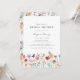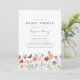 Färgglad bröllopsfestinbjudan. Följ med oss i en kärleksfirande med handmålade akvarellvilda blommor i röda, rosa, gyllene och lila nyanser med en söt blå trollslända och monarkfjäril! Dessa vackra blommor kommer säkert att ge glädje och förtjusning till din speciella tillställning!