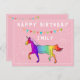 Färgglad enhörning och girlangflaggor rosa lycklig födelsedag vykort för flickor. Regnbågsfärgad enhörning och girlangflaggor. Lägg till ditt namn.