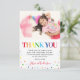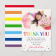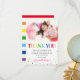 Tacka vänner och familj för att de gjorde ditt barns födelsedag till en speciell tillställning med dessa söta färgglada tackkort för barnkalas. Med regnbågstexten 'TACK', ett foto av födelsedagsbarnet, spridda färgglada prickar och ett tackmeddelande som enkelt kan anpassas.