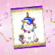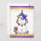 En enhörningsbaby omgiven av en ram av gyllene glitter och älvdamm, i regnbågens färger, sittande inuti en ram i guld, silver och lila. Det här söta lilla enhörningskortet skulle utgöra en idealisk inbjudan till födelsedagsfest, eller bara bli en söt väggdekoration för en liten flickas sovrum. Observera att det finns flera andra brevpapperprodukter med samma design, inklusive inbjudan till fest och matchande kuvert, som du kan se här: https://www.zazzle.com/collections/colorful_glitter_purple_unicorn-119145445759036160