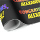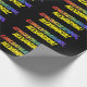 Denna roliga presentpapper design har meddelandet "GRATTIS", med tecknen i en regnbågsspektrum-inspirerad gradientfärg, tillsammans med ett personligt namn. Presentpapper som detta kan användas när man förpackar en gratulationspresent till någon.