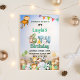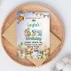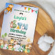 Gör ditt barns 6-årsdag oförglömlig med denna färgglada gröna och blå Safari-inbjudan! Med söta handritade illustrationer av en giraff, leopard, noshörning, lejon, elefant och fågel, sätter denna charmiga inbjudan tonen för en rolig, könsneutral fest. Den lekfulla texten "Ett älskligt litet vilding kommer snart" tillför en förtjusande touch som gästerna kommer att älska.
