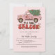 Det är dags att bli groovy! Denna retro julfest inbjudan har en akvarell rosa pickup-lastbil med en julgran och roliga retro 70-tals blommor och stjärnor. Baksidan har ett färgglatt mönster av retro vågor i dämpade julfärger. Det är det perfekta sättet att inbjuda din familj och vänner till en rolig julfest.