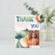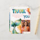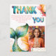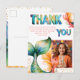 Färgglad Havfrus födelsedags Tacksamhet Flickfotografi Postkort. Sött havfrupostkort för födelsedagar att tacka dina vänner och familj. Ladda upp din bild och anpassa kortet med ditt namn och text. Kortet har en färgglad havfrusvans och färgglad tack-text.