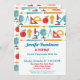 En super söt skoltematisk pensionsinbjudan med färgglatt mönster med jordglob, gradskivor, passare, mikroskop med mera.