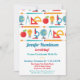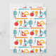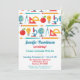 En super söt skoltematiserad pensionsinbjudan med färgglatt mönster med jordglob, gradskivor, passare, mikroskop med mera.