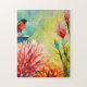 Färgglad Kolibri Blommig Akvarell Trädgård Pussel