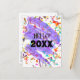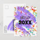Denna nyårsdesignade vykortomslag har färgglad konfetti och en lila slinga. Anpassa texten på framsidan och baksidan, ta bort eventuell text eller klicka på anpassa för att välja en annan typsnittsstil, storlek och färg du föredrar.