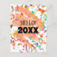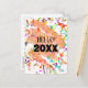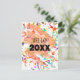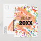 Denna nyårskortmall har färgglad konfetti och en orange slinga. Anpassa texten på framsidan och baksidan, ta bort eventuell text eller klicka på anpassa för att välja en annan typsnitt, storlek och färg som du föredrar.