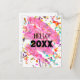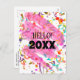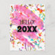 Denna nyårsdesignade vykortomslag har färgglad konfetti och en rosa slinga. Anpassa texten på framsidan och baksidan, ta bort eventuell text eller klicka på anpassa för att välja en annan typsnitt, storlek och färg du föredrar.