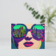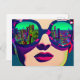 Färgglad konst Kvinna i solglasögon Stad Reflektio Vykort