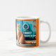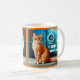 En rolig och fantasifull kopp med en målning av en röd katt i en hamn. Naturligtvis behöver varje båt en katt för att hålla mössen borta, så en chefsråtta är nödvändig. De turkosa och orangea färgerna skapar en glad energi. En bra kopp för ett strandhus, sjöman och kattälskare.