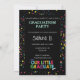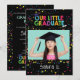 Fira ditt barns stora milstolpe med denna roliga och färgglada examensinbjudan! Med en lekfull svart bakgrund med ljusa konfettistjärnor, djärva flerfärgade bokstäver och utrymme för ett foto, ger denna design en glad ton till din lilla examen på deras speciella dag.