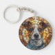 En fantastisk cirkulär mosaikkonst som skildrar en Jack Russell Terrier hunds ansikte, med varma färger och intrikata glasdetaljer, som skapar en fängslande och konstnärlig representation.