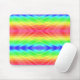 Färgglad musmatta med ett ljust, symmetriskt mönster av diagonala regnbågsränder och geometriska former som frammanar en livfull och lekfull stämning.