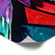 Livlig och färgrik örns konst. Örnens huvud är avbildat i en slående stil med lager av djärva, geometriska former och starka färger, inklusive röda, blå, gröna och gula nyanser. Fjädrarna är stiliserade med invecklad detaljrikedom och uppvisar en mängd olika nyanser som skapar en känsla av djup och rörelse. Bakgrunden består av likaså färgrika geometriska mönster som förstärker den övergripande dynamiska kompositionen. Örnens genomträngande blick ger verket en intensiv fokuspunkt som förmedlar styrka och majestät.