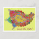 Spara datum postkort kort med flerfärgad paisley på omslaget.