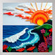 En livfull och invecklad pappersquillingkonst som visar en soluppgång, havsvågor och blommande blommor, som kombinerar naturinspirerade motiv och konstnärlig kreativitet.