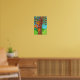 Denna ljusa, färgglada handritade folkkonstbild av konstnären Debbie Hart visar en söt randig serietecknad tabbykatt som klättrar i ett fantasifullt träd med regnbågsblad, ett roligt och iögonfallande tillägg till rum eller barnkammare för barn, tonåringar eller vuxna med ungdomligt sinne.