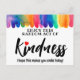 Ljuvliggör någons dag med detta Färgglada regnbåge Slumpmässig vänlighets-postkort! Med en livfull design är detta uppmuntrande kort perfekt för att dela uppmuntran, tacksamhet eller en enkel vänlighetsgest. Oavsett om det lämnas till en främling, ges till en vän eller används för en anonym god gärning, är detta postkort ett vackert sätt att sprida positivitet och glädje.