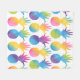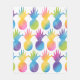 En ljus, glad filt täckt med rader av vattenfärgade ananas-silhuetter i levande regnbågsfärger av rosa, blå, lila, gul och grön. Varje ananas har en unik gradientfärgblandning för en lekfull, konstnärlig effekt på en ren vit bakgrund. Ett roligt tropiskt kast perfekt för barnrum, korridordekoration, strandhus eller någon som älskar ananas-stil.