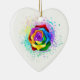 Stor, blommande ros med regnbågskronblad på vit bakgrund, målad med stänk av färgrik, ljus färg. 3d