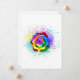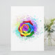 Stor, blommande ros med regnbågssamlade kronblad på vit bakgrund, målad med stänk av färgglatt, ljust färgämne. 3d