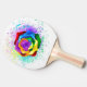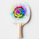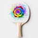 Stor, blommande ros med regnbågskronblad på vit bakgrund, målad med stänk av färgrik, ljus färg. 3d
