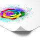 Stor, blommande ros med regnbågspetaler på vit bakgrund, målad med stänk av färgrik, ljus färg. 3d