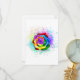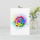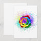 Stor, blommande ros med regnbågskronblad på vit bakgrund, målad med stänk av färgrik, ljus färg. 3d