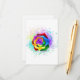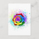 Stor, blommande ros med regnbågsknoppar på vit bakgrund, målad med stänk av färgrik, ljus färg. 3d