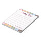 Om du letar efter ett snyggt personligt anteckningsblock och gillar retro- eller vintageinspirerade uttryck och stilar, kanske du uppskattar detta färgglada retro-anteckningsblock med texten "Tack ditt namn" från Zazzle! Varje anteckningsblock är tillverkat av FSC-certifierat papper, är 5,5" x 6" stort och innehåller 40 sidor med en rivbar remsa på ena sidan. Säljs styckvis eller i mängder om 2-500. Linjerat för din antecknings bekvämlighet. Anpassa enkelt namnet på framsidan för att möta dina affärsbehov. Spara när du köper mer - inga minimikrav! 100% tillfredsställelsegaranti.