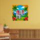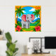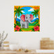 Färgglad serieelefant i tropiskt landskap poster