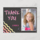 Färgglad skrivtavla Födelsedags Tacksam Fotopostkort för Flickor. Söt födelsedag tacksamhetskort med ett foto och tack för ditt meddelande till dina vänner och familj. Ladda upp ditt foto och anpassa kortet med ditt barns namn. Kortet har färgglada stjärnor och vågor på framsidan och baksidan på mörkgrå bakgrund. Bra som tack-kort för flickor.
