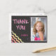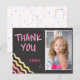 Färgglad skrivtavla Födelsedags Tacksamhet Foto Postkort för tjejer. Söt födelsedag tacksamhet kort med ett foto och tack meddelande för dina vänner och familj. Ladda upp ditt foto och anpassa kortet med ditt barns namn. Kortet har färgglada stjärnor och vågor på framsidan och baksidan på mörkgrå bakgrund. Bra som tack-kort för tjejer.