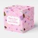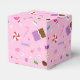 Skicka iväg dina gäster på en söt not med denna söta godis-tema presentlåda! Mönstret inkluderar diverse godisar såsom godisstavar, godisbitar, choklad, chokladkakor, majsgodis, inslagna godisar i virvlar och ränder mönster. Sött och flickigt färgschema med mest rosa och lila gör det till en bra presentlåda för en baby shower för flicka eller en flickas födelsedagsfest!