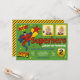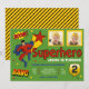 Överraska dina gäster med denna färgglada superhjälte födelsedagsfest inbjudan med en superhjälte i aktion med livlig typografi mot en grön bakgrund. Lägg enkelt till dina evenemangsuppgifter i denna lättanvända mall och pryda detta kort med ditt barns 2 favoritfoton för att göra det till en unik inbjudan. Vänd på kortet för att avslöja ett gult och svart randigt mönster på baksidan av kortet.
